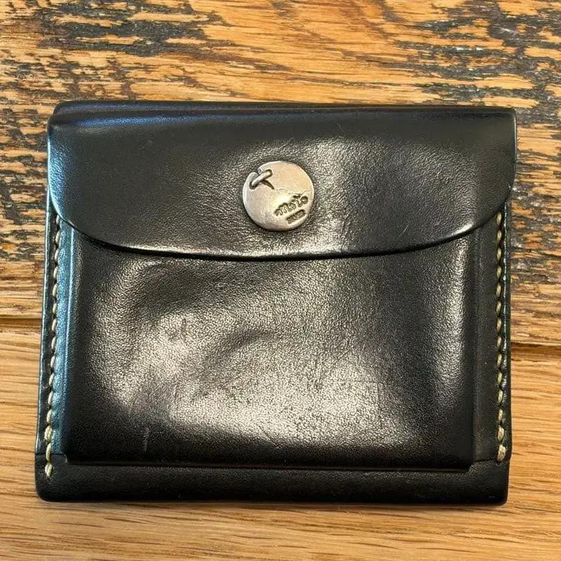 MOTO 천연 가죽 지갑. 버튼은 스털링 실버 소재. 동전, 카드, 지폐 수납이 좋고 컴팩트한 느낌의 지갑입니다. 사용감은 있지만, 계속해서 길들여 나갈 수 있는 상태입니다. 지갑 외의 부속품은 없습니다.