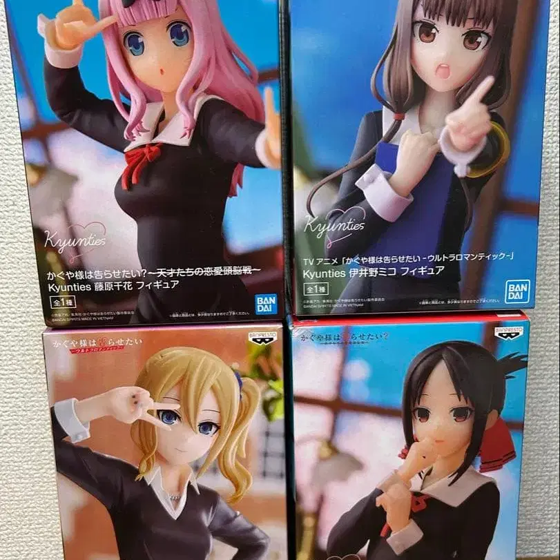 카구야 님은 고백받고 싶어 피규어 4개 세트 판매입니다. 개봉 완료 시노미야 카구야 후지와라 치카 하야사카 아이 이이노 미코 예민하신 분, 완벽한 제품을 원하시는 분은 구매를 삼가해 주십시오.