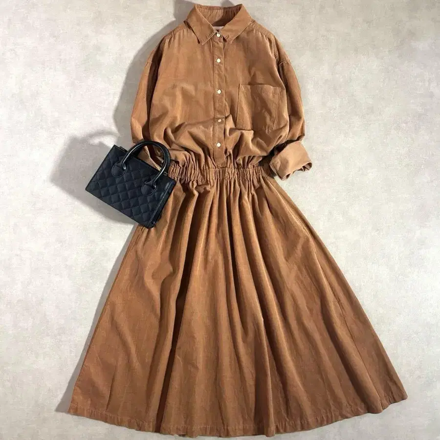 어반 리서치 도어스 코듀로이 셔츠 원피스 면 브라운 카멜