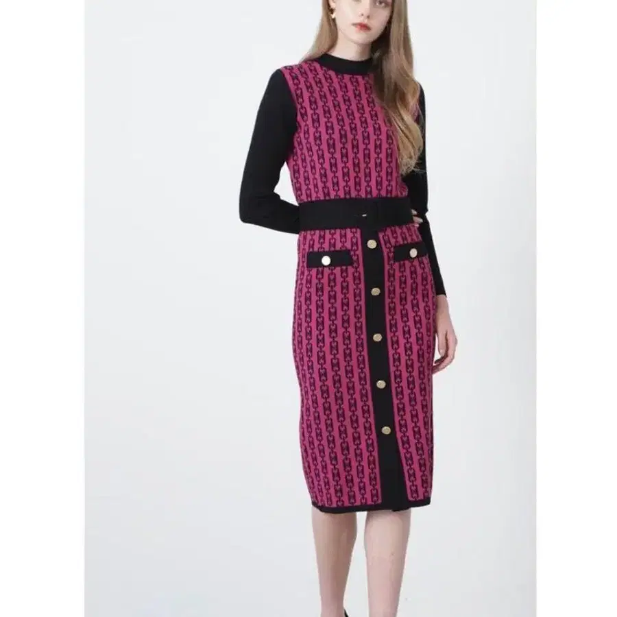 핑키앤다이안 바이컬러 자카드 니트 원피스