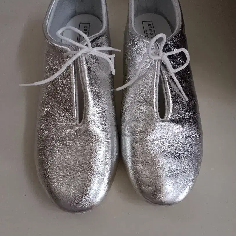 실버 가죽 플랫슈즈, 핸드메이드 고품질 디자인. - 브랜드: ERRIS VICTORIA - 사이즈: 7 - 색상: 실버 - 소재: 가죽 방문해 주셔서 감사합니다. 몇 번 신었습니다. 깨끗합니다. 영국제 댄스 슈즈라 부드럽고 착용감이 좋습니다. 신발 밑창이 얇아서 스니커즈와는 다른 느낌을 받습니다. 흔한 발레 슈즈가 약간 넓어져 양말을 신고 신을 수 있는 느낌입니다. 평소 24cm를 신고 양말과 함께 신으면 딱 맞는 사이즈입니다. ※ 배송 시에는 발꿈치를 안으로 접어 우편함 배송을 생각하고 있습니다. 접어도 자국이 남지 않고 바로 원래대로 돌아옵니다. 다른 희망 사항이 있으시면 말씀해 주세요.