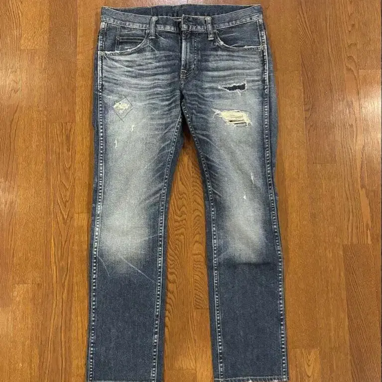 • LANKIZE 슬림핏 데님 데미지 가공 데님