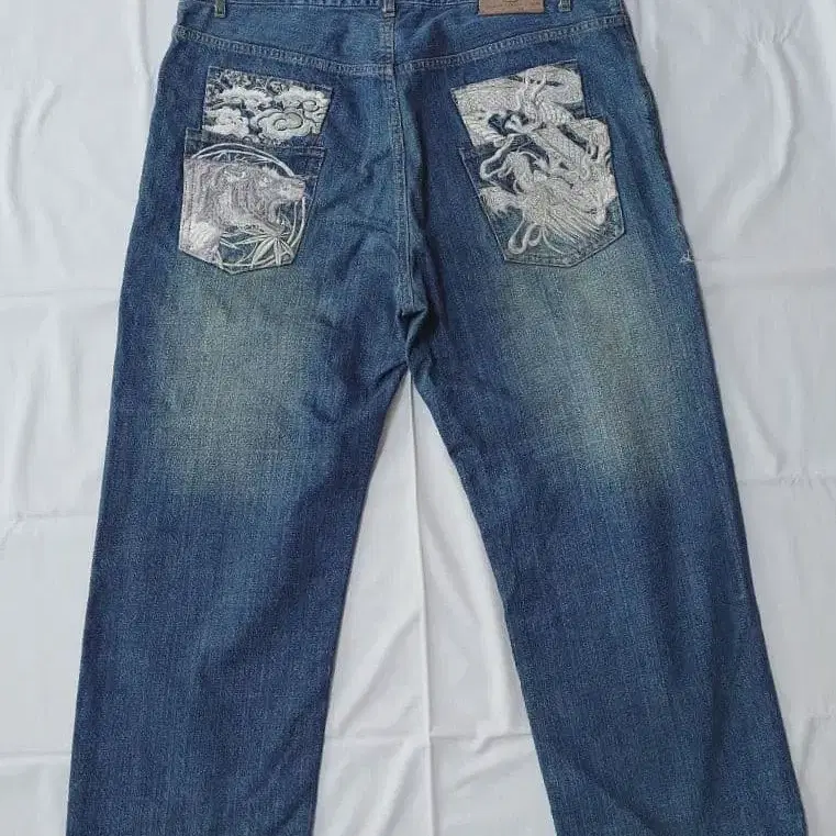 용과 호랑이가 럭셔리하게 자수된 카라쿠리타마시 특유의 청바지입니다. 엉덩이 포켓은 2단으로 되어 있습니다.