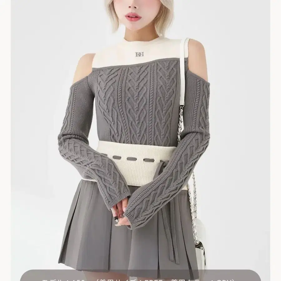 다리치 숄더 오픈 니트 셋업 FL 블랙