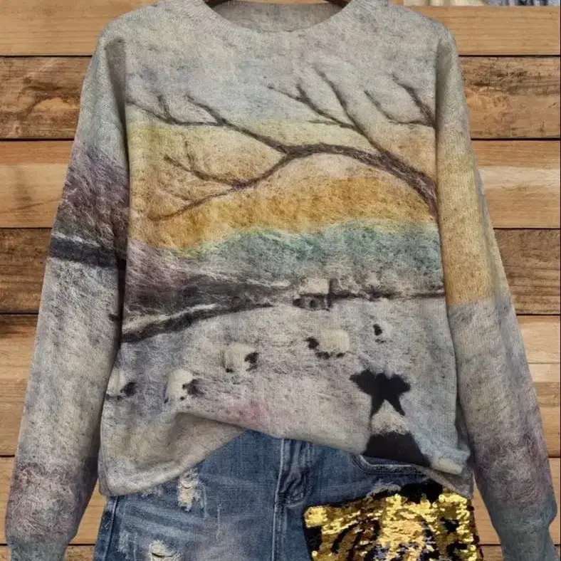 DiFINi 기하학 패턴 긴팔 스웨터 L 사이즈 니트 복고풍 느낌