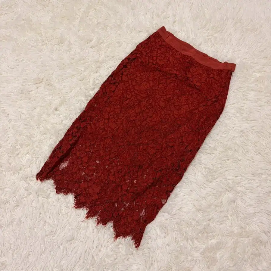 ◯ 특징: 꽃무늬 레이스가 섬세하고 엘레강트한 인상을 주는 스커트입니다. 밑단은 스캘럽 디자인으로 내추럴한 실루엣을 연출합니다. 안감이 부착되어 비침을 억제하면서 여성스러운 분위기를 연출합니다. 차분한 다크 레드 색상은 가을, 겨울 코디에도 ◎