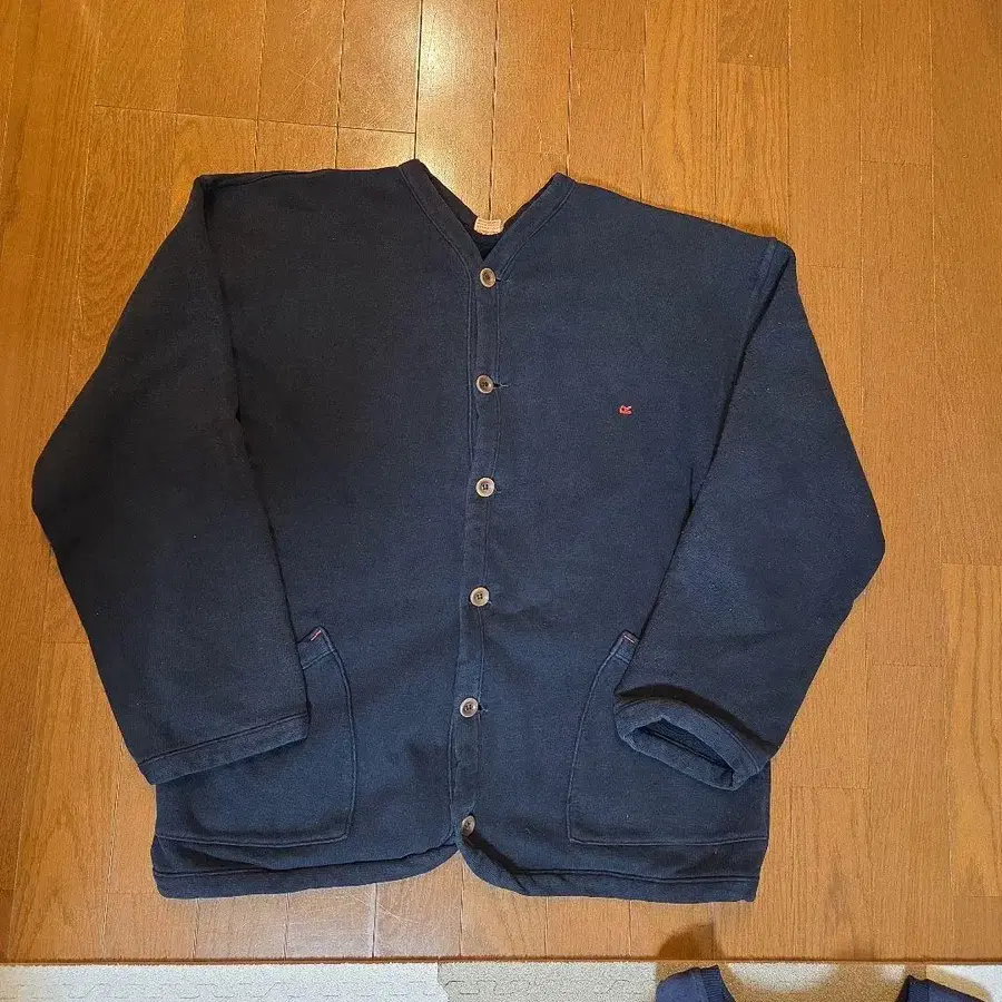 45rpm 네이비 버튼 가디건, 앞면 포켓 부착입니다. 사이즈는 3으로, XL 정도의 크기입니다. 눈에 띄는 흠집이나 얼룩은 보이지 않습니다. 원래 짙은 네이비 색상이 아니지만, 세탁으로 인해 새상품보다 색이 다소 옅어졌을 수 있습니다. 사진으로 확인 부탁드립니다. 개인 검품이므로 이해해 주시는 분께 부탁드립니다.