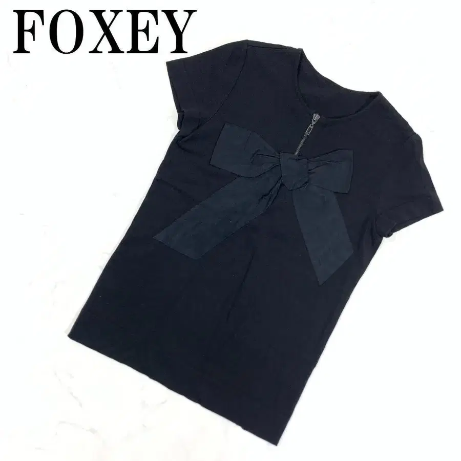 LA7433 폭시 코튼 리본 장식 반팔 티셔츠 블랙 38