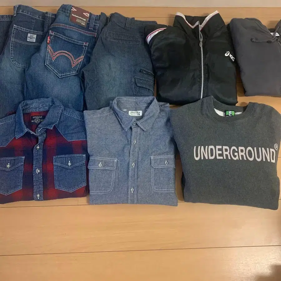 낱개 판매는 생각하고 있지 않습니다. 눈에 띄는 데미지나 얼룩은 없지만 사용했던 제품이므로, 착용감과 주름이 보이는 물건이 있습니다. 이해해 주시는 분은 잘 부탁드립니다. asics의 후드티는 사이즈 표기가 지워졌지만 XL 정도라고 생각합니다. EDWIN Lee 챔피온