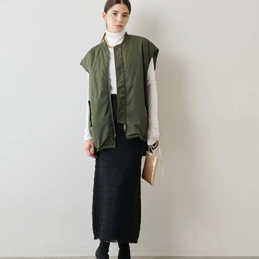 ■ MA-1 블루종과 같은 디테일로 제작된 충전솜 베스트.