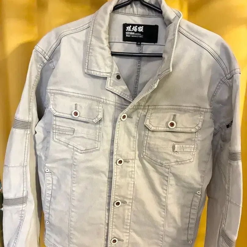 지베크 현장 의류 라이트 그레이 버튼 부착 자켓과 카고 팬츠 세트