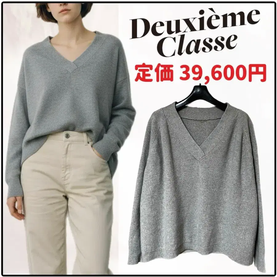 [ 새상품급 ] 두지엠 클라세 V넥 캐시미어 혼방 니트 그레이지
