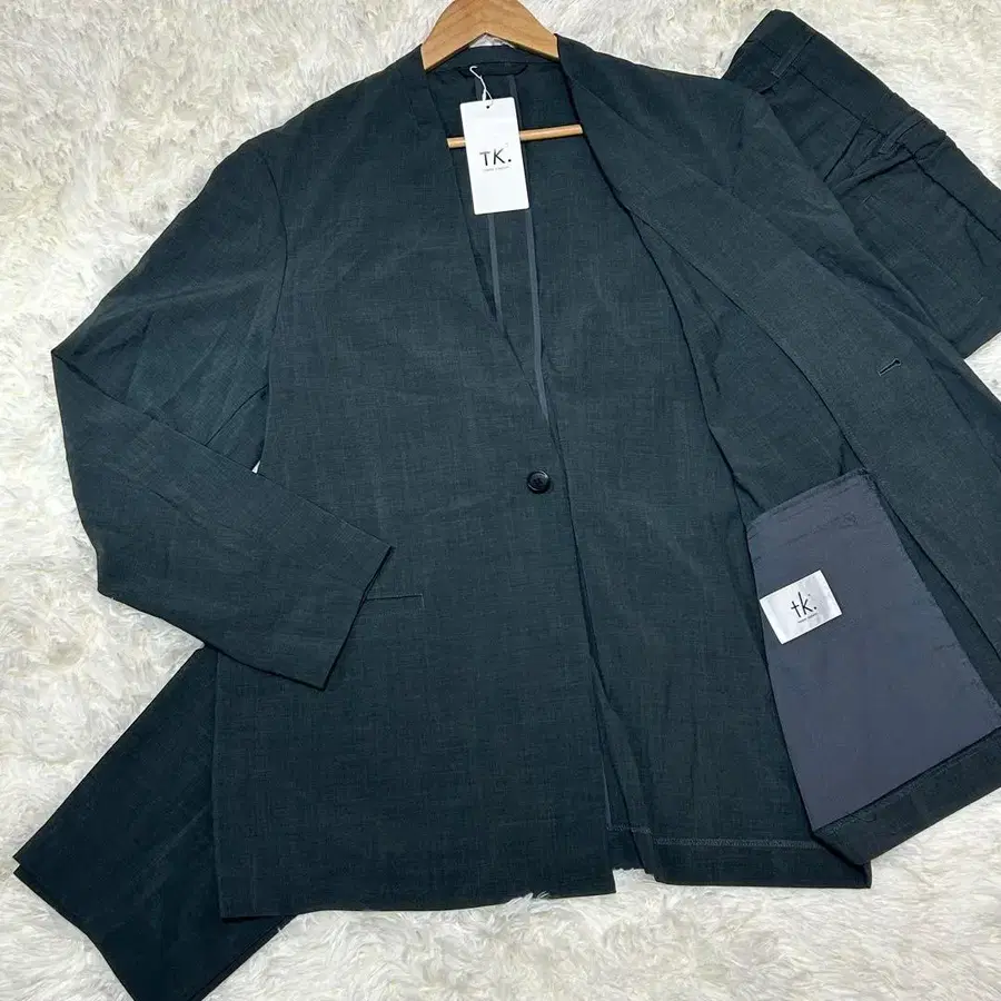 고급스러운 다크 그레이 색상에, 노카라 x 원 버튼의 세련된 디자인이 특징인 셋업입니다.