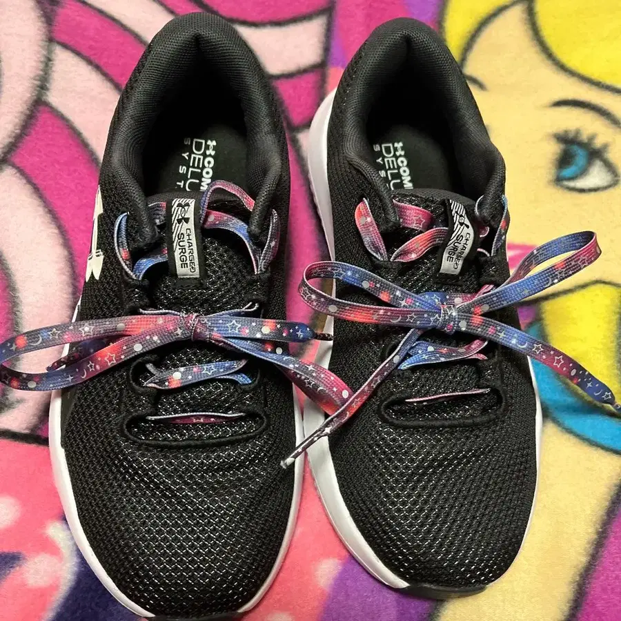 방문해 주셔서 감사합니다. 신발 끈이 정말 예뻐서 추천합니다. 폭이 넓고 넉넉해서 남성분들께도 추천합니다. 검은색 끈도 함께 드립니다. 메쉬 어퍼와 CHARGED 쿠셔닝을 갖춘 블랙 스니커즈. - 브랜드: UNDER ARMOUR - 사이즈: 24.5cm 8 (USA) / 6 (UK) / 39 (EUR) - 색상: 블랙 - 특징: 메쉬 어퍼, 컬러풀한 슈레이스 - 밑창: CHARGED 쿠셔닝 - 모델명: AKA 방문해 주셔서 감사합니다.