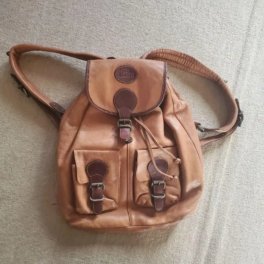 브라운 가죽 플랩 백팩, 포켓 2개 부착. 상태는 사진과 같습니다. - 색상: 브라운 - 소재: 가죽 - 스타일: 백팩 - 포켓 수: 2 방문해 주셔서 감사합니다.