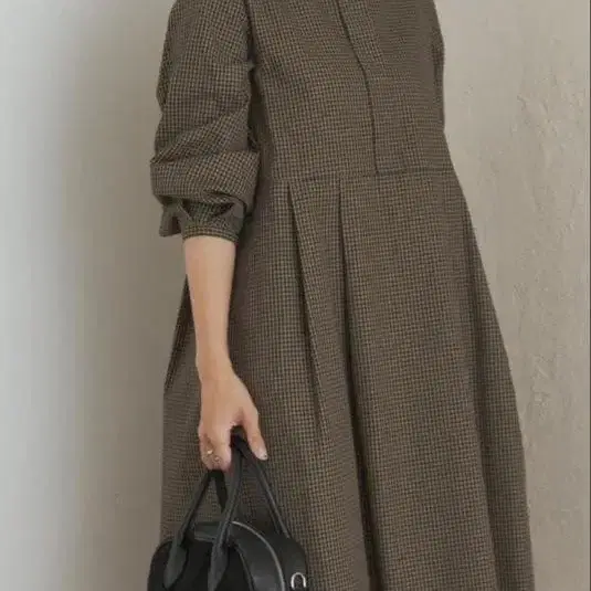 tocco closet 모카색 레이스업 시어 체크 도킹 원피스
