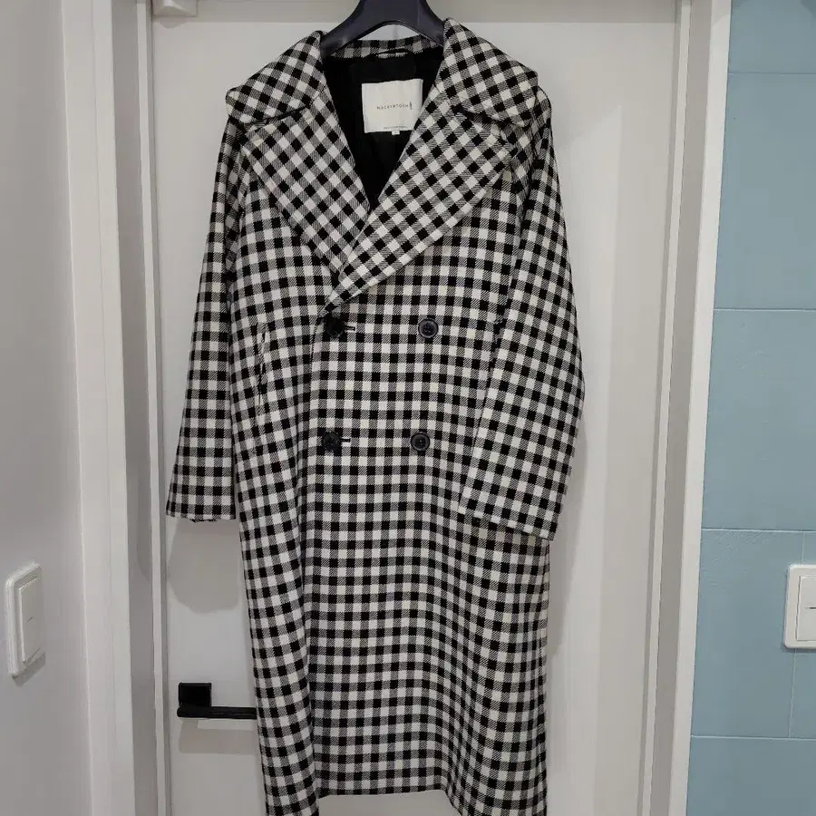 블랙과 화이트 체크 무늬의 더블 브레스트 롱 코트입니다. 몇 번 착용했습니다. 마음에 드시면 구매해 주시면 감사하겠습니다 (^o^)/ 빨리 구매하는 사람이 임자입니다!