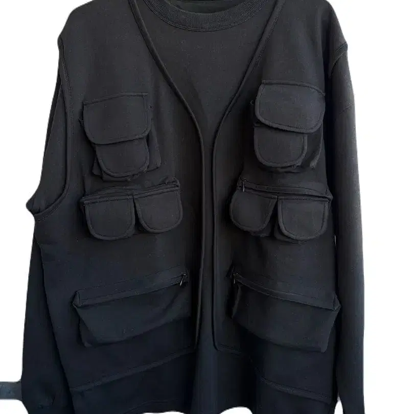 자동 번역되었어요. 원문보기포켓이 달린 블랙 맨투맨 베스트, 쾌적한 착용감과 스타일리시한 디자인.