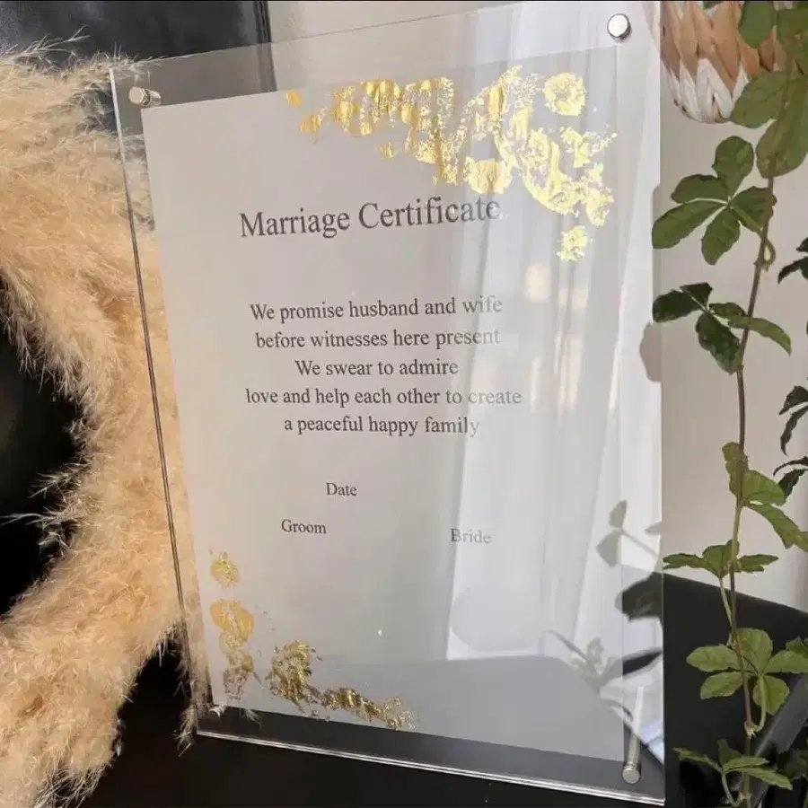 [ 큰 A4 사이즈 ] 결혼 증명서 맹세의 말 금박 액자 포함