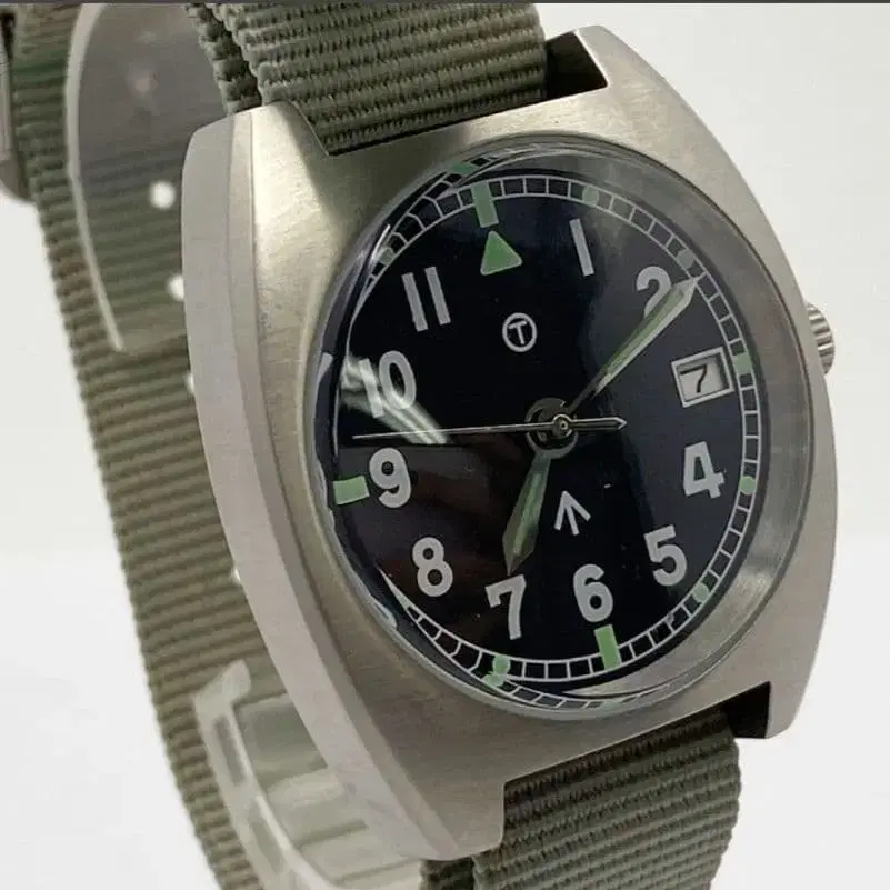 밀리터리 워치 MWC 016/250 자동 태엽 군용 영국군 노 로고 아날로그 실버 컬러 데이트