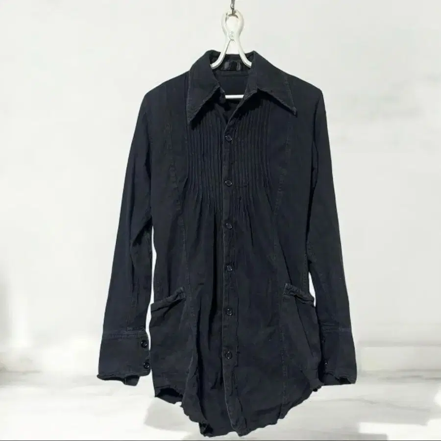 브랜드명: God of Roses 상품명: Black Cherry 롱 셔츠 코트 사이즈: 0 치수: 기장 92cm/가슴 너비 46cm/어깨 너비 40cm/소매 길이 72cm 소재: 코튼 100% 슬림하고 아름다운 실루엣 빅 사이즈 옷깃으로 소두 효과 있음 소매의 7개 버튼, 비대칭적인 개성 있는 소매 끝