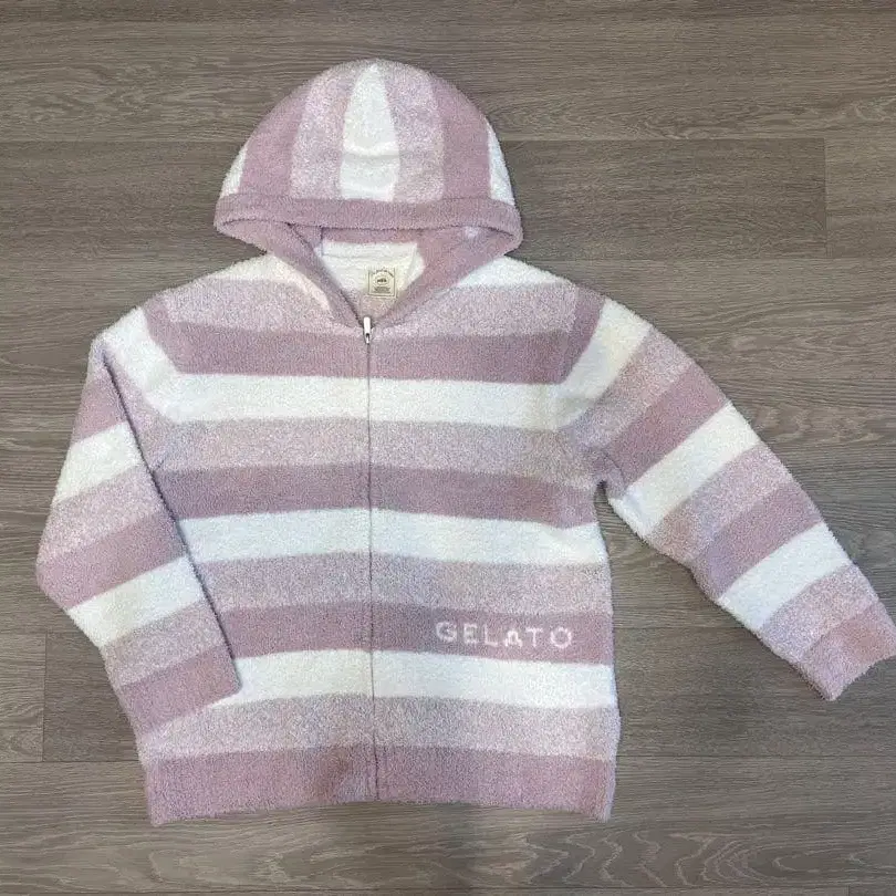 포근하고 따뜻한 젤라또피케 후드티입니다. 핑크색 보더와 로고가 귀여운 상품입니다. ^^ 몇 번 착용한 후 자택 보관했습니다.