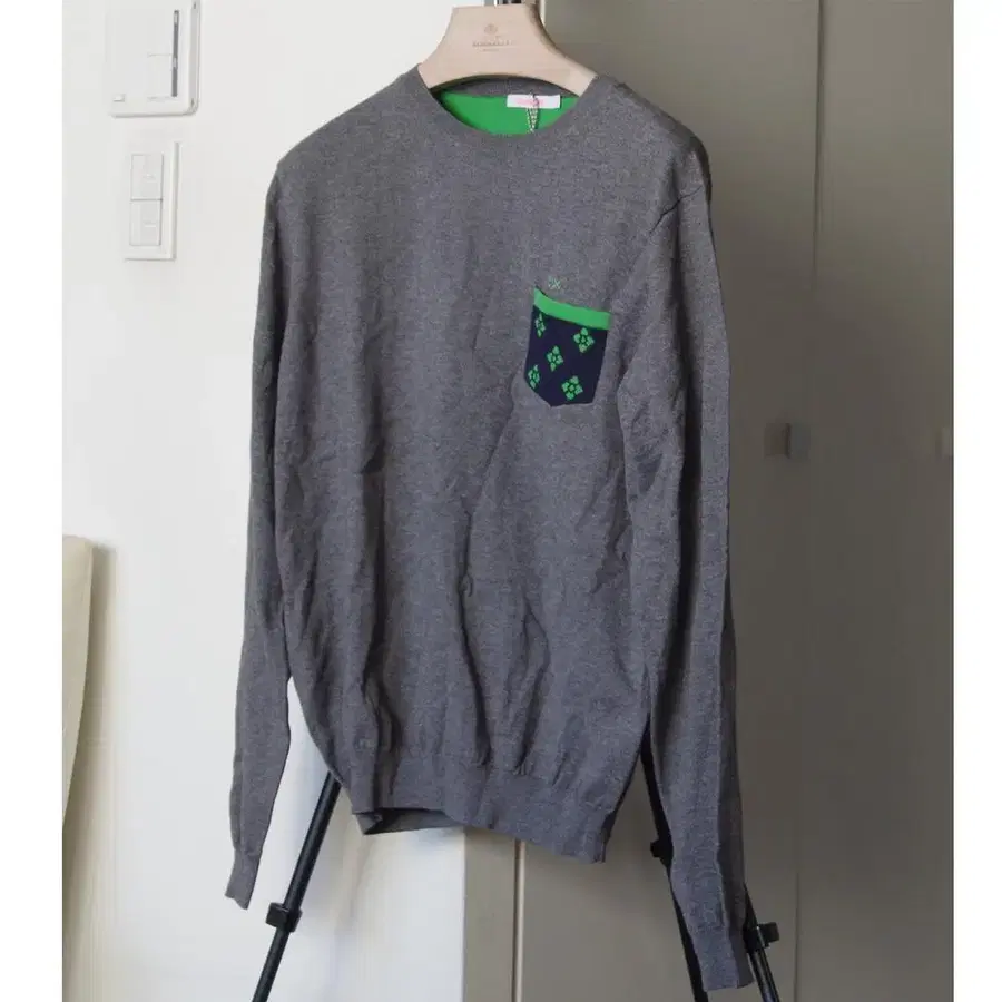 원 포인트 포켓이 멋스럽습니다. 소매가 깁니다.