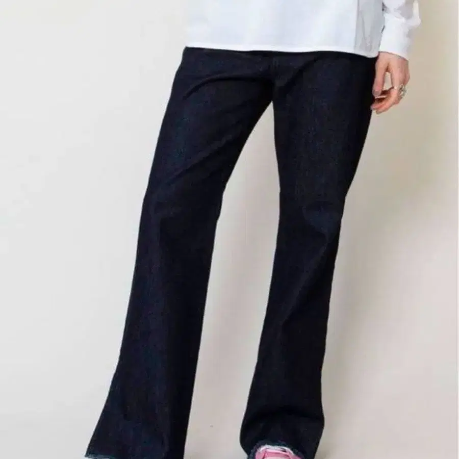 화이트 데님 청바지 스트레이트 심플 코디 매치하기 쉬운 발길이