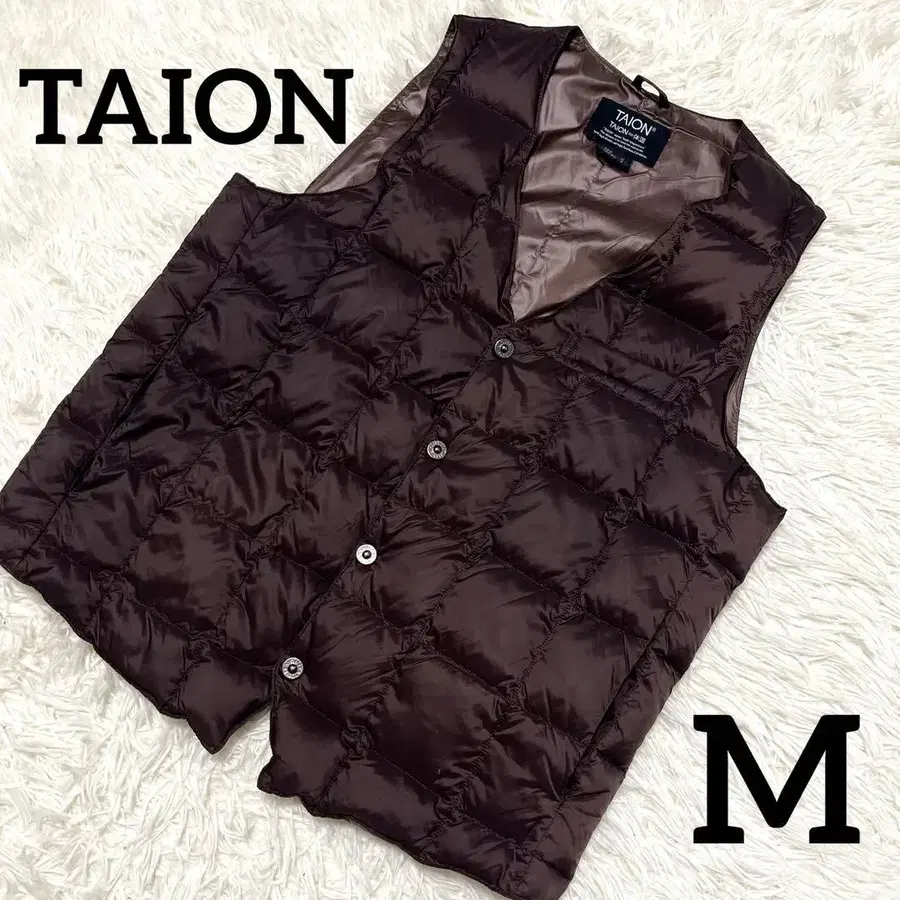 TAION 남성용 다운 베스트 다운 지레 브라운 M 수납 봉투 있음