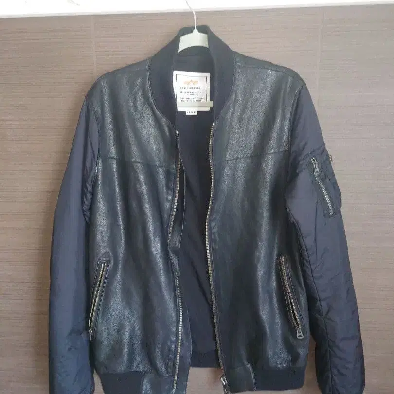 ALPHA INDUSTRIES의 MA-1 타입 가죽 자켓입니다. 소매 부분은 나일론 소재로 절개되어 디자인의 악센트가 되고 있습니다. 왼쪽 팔에는 브랜드 로고가 들어간 포켓이 달려 있습니다.