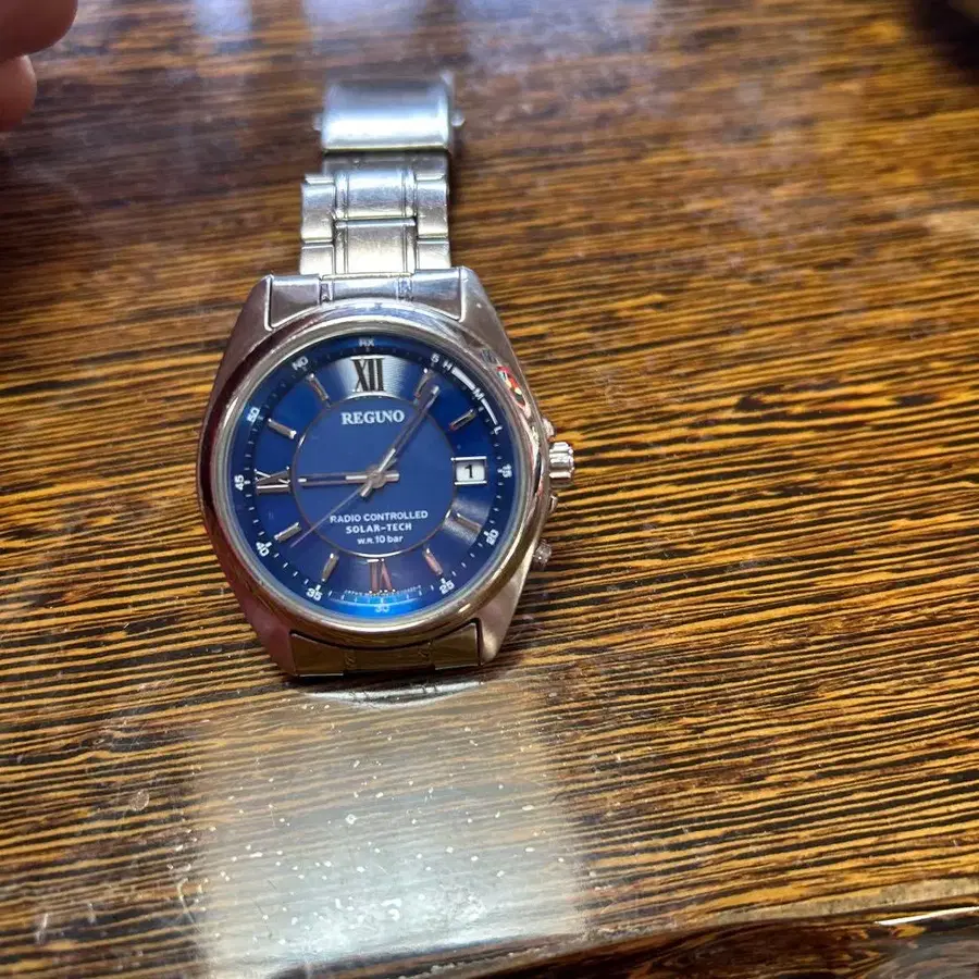 • 작동품. REGUNO 솔라 쿼츠 손목시계 실버