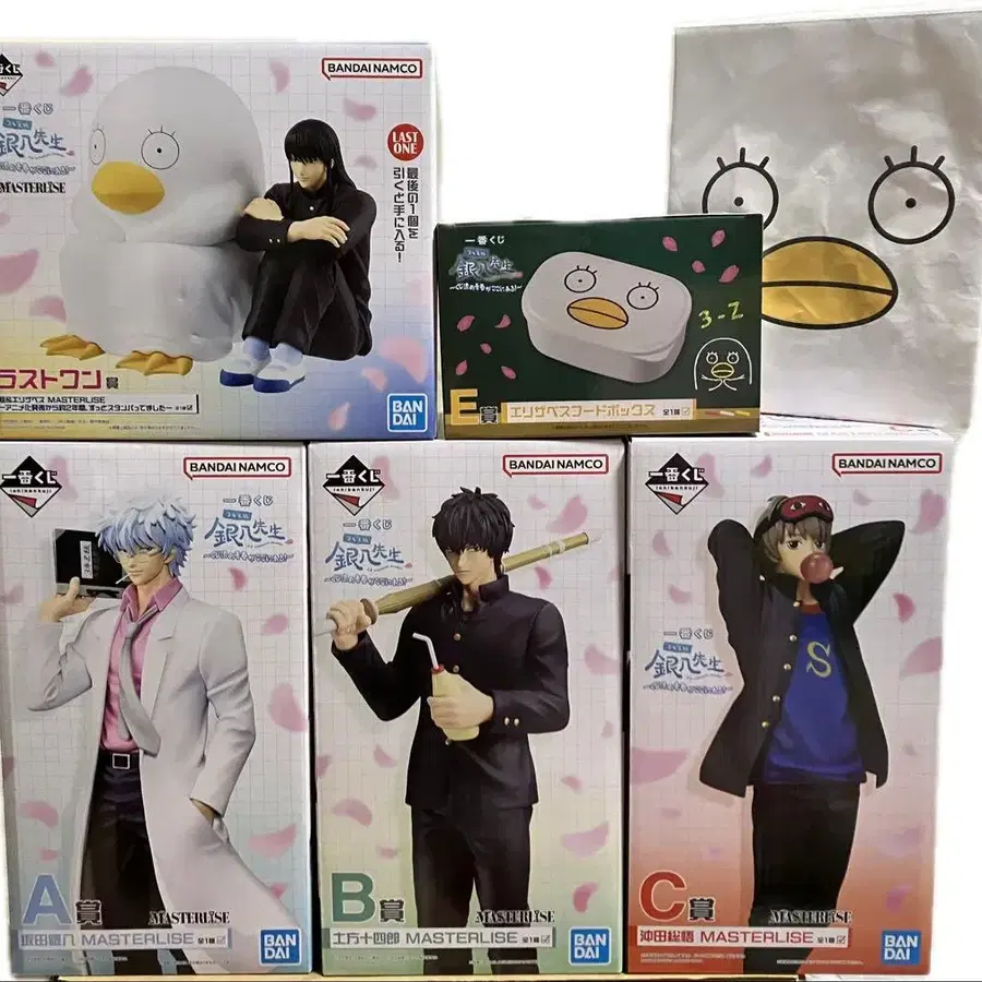 방문해 주셔서 감사합니다. 제일복권 3년 Z반 긴파치 선생님 ~복권식 청춘이 여기에!~ A상 사카타 긴파치 MASTERLISE B상 히지카타 토시로 MASTERLISE C상 오키타 소고 MASTERLISE D상 학식풍 런치백 엘리자베스 E상 엘리자베스 후드 박스 라스트 원상 카츠라&엘리자베스 MASTERLISE 미개봉 새상품입니다. 에어캡으로 감싸서 포장합니다.