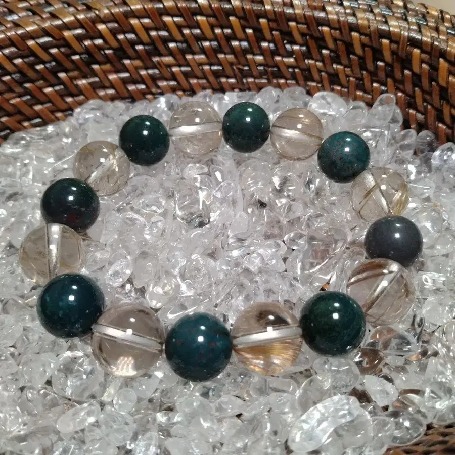 지적인 미인 스모키 루틸 쿼츠 하트 수정 팔찌 액막이 금전운