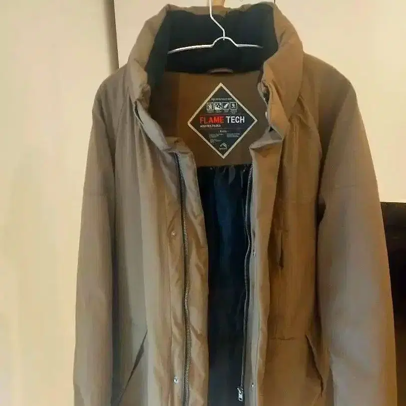 FLAME TECH를 채용한 브라운 마운틴 후드티, 플리스 안감과 후드 부착으로 방한성이 뛰어납니다.