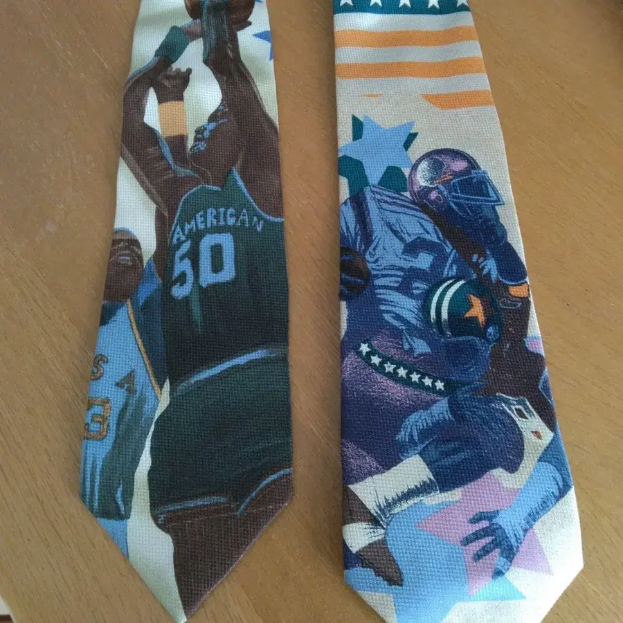 농구와 미식축구 선수가 그려진 유니크한 넥타이.