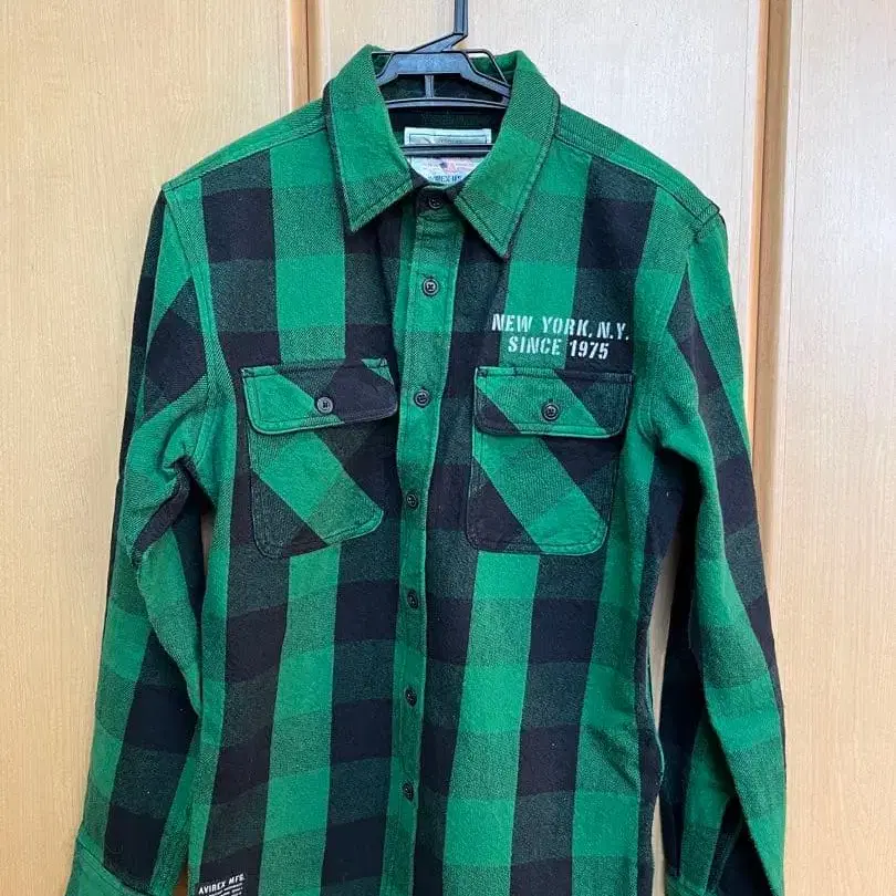 체크 무늬의 그린과 블랙 플란넬 셔츠, AVIREX 제조, S 사이즈. - 브랜드: AVIREX - 색상: 그린/블랙 - 사이즈: S - 디자인: 체크 무늬 - 특징: 전면에 [ NEW YORK, N.Y. SINCE 1975 ] 자수 - 특징: 뒷면에 [ AVIREX MFG. ] 프린트 방문해 주셔서 감사합니다. 사이즈 - S 색상 - 그린 계열 패턴 - 체크 어깨 너비: 43 가슴 너비: 48 소매 길이: 58 기장: 66