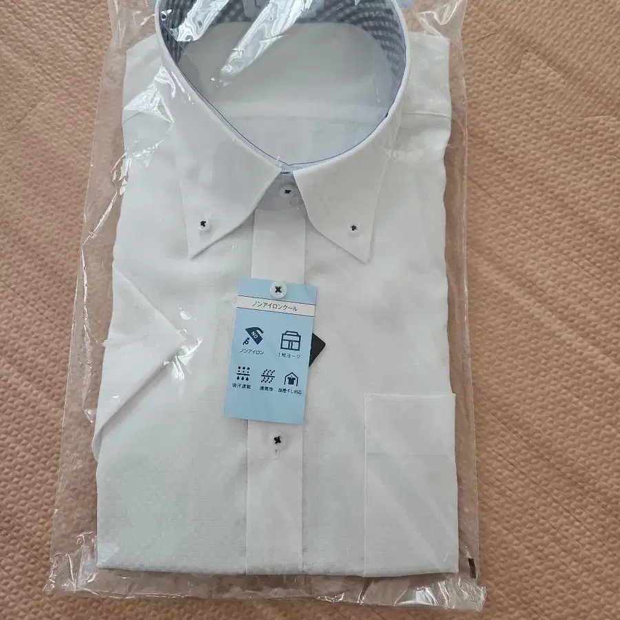 흡한속건으로 통기성이 좋은 논아이론 화이트 와이셔츠. - 색상: 화이트 - 소재: 논아이론 - 특징: 흡한속건, 통기성, 실내 건조 대응 - 디자인: 체크 무늬 옷깃 - 포켓: 있음 논아이론이라 편안합니다. 촬영을 위해 봉투만 개봉했습니다.