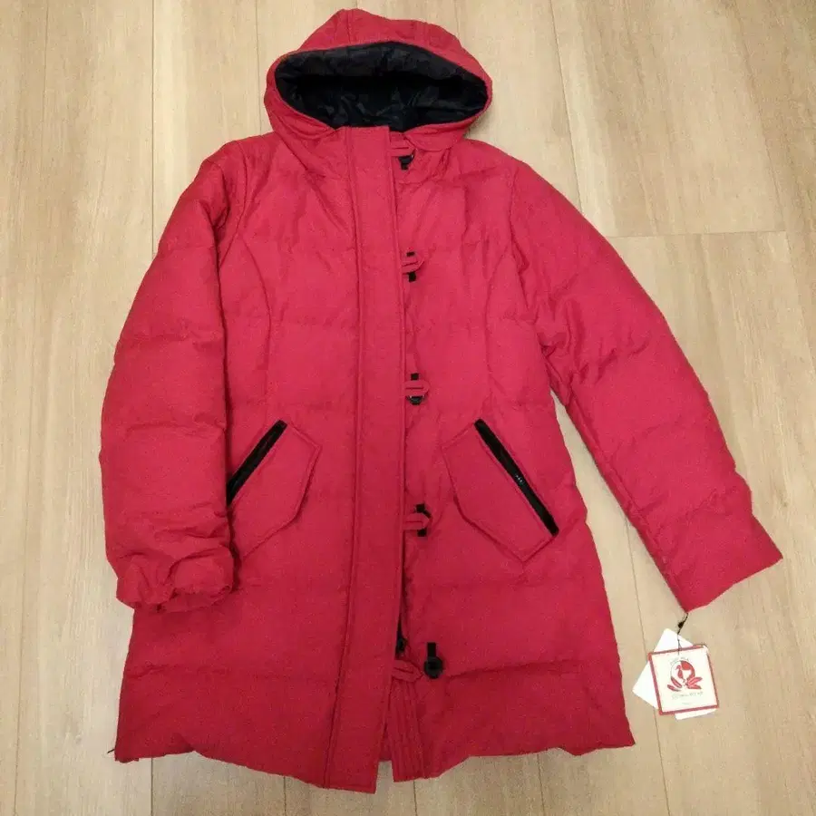 미사용 새상품 빨간색 후드 부착 다운 자켓 여성용