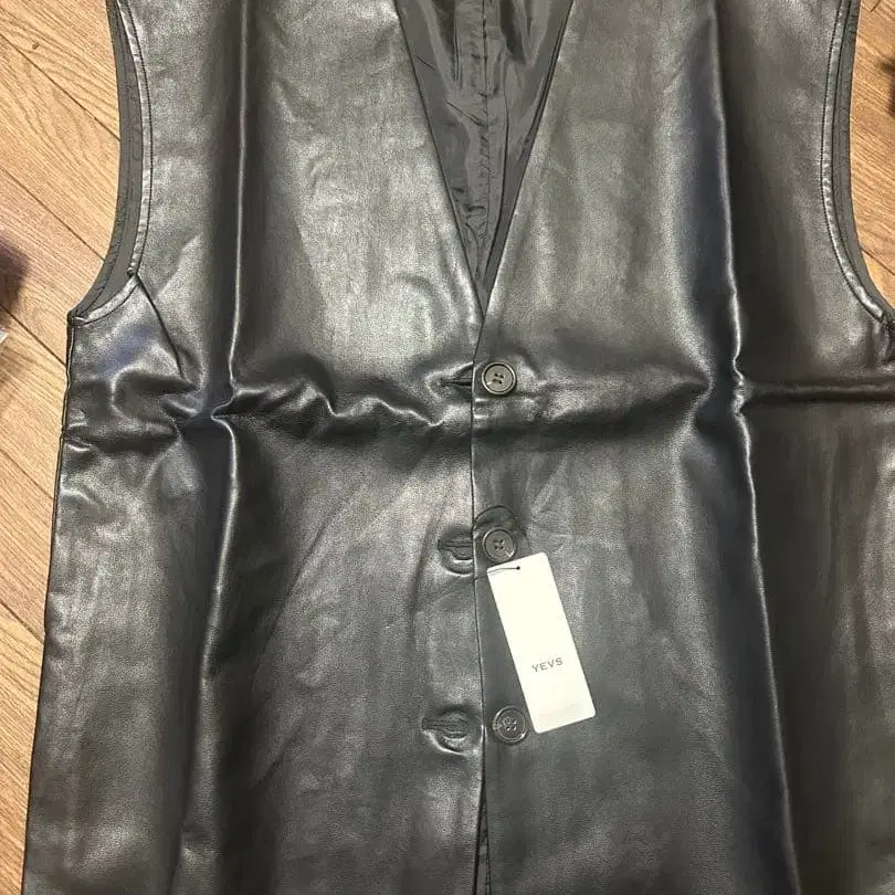 YEVS 블랙 가죽 베스트