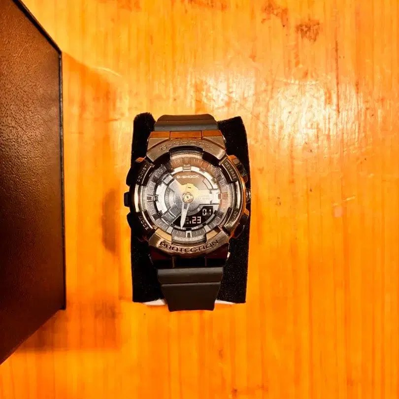 G-SHOCK의 인기 디지털 아날로그 콤비 모델 110 시리즈에서 메탈을 입히고 소형화, 얇게 만든 모델입니다.