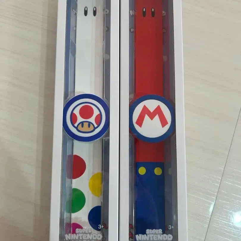 마리오와 키노피오 디자인이 특징인 파워업 밴드 2개 세트. - 모델명: 파워업 밴드 - 캐릭터: 마리오, 키노피오 - 색상: 빨간색, 파랑, 화이트, 컬러풀 - 디자인: 마리오와 키노피오 - 수량: 2개 세트 사진에도 나와 있듯이 키노피오의 도트 디자인 부분에 약간의 프린트 벗겨짐이 있습니다. 2025년 12월에 한 번 사용했습니다. 앱 등록은 해제된 상태입니다. 방문해 주셔서 감사합니다.