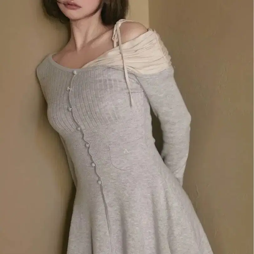 Darich 도킹 미들 허리 니트 미니 원피스