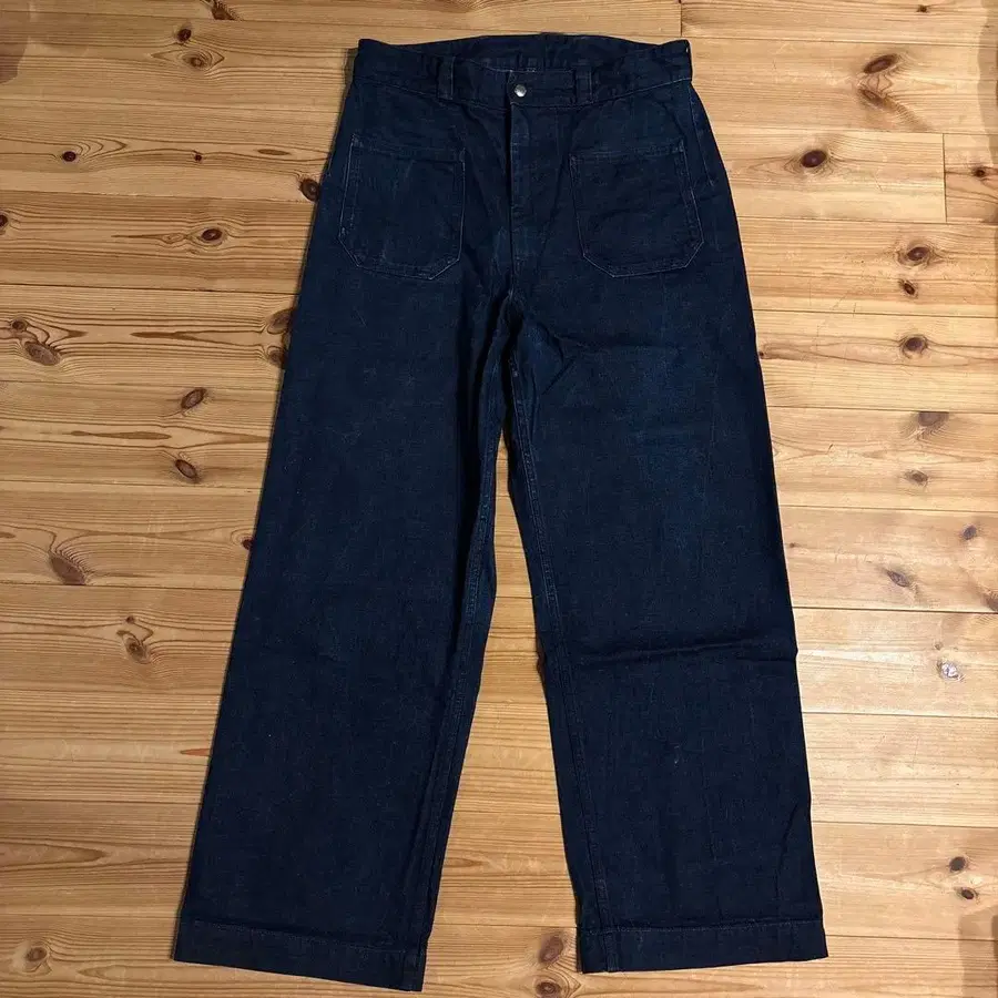 깔끔한 와이드 실루엣의 데님 팬츠입니다.