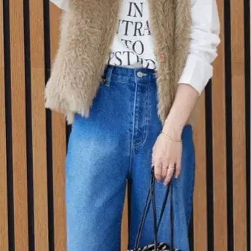 털이 긴 나일론 페더얀을 사용한 니트 베스트.