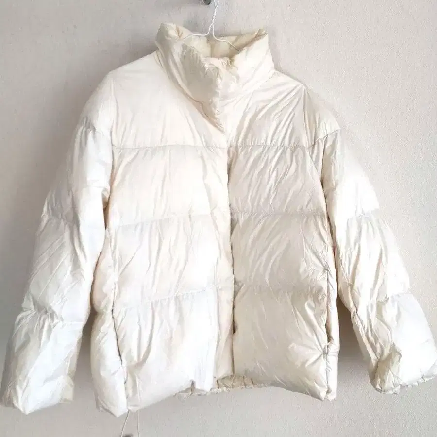 아이보리 색상의 다운 자켓입니다.