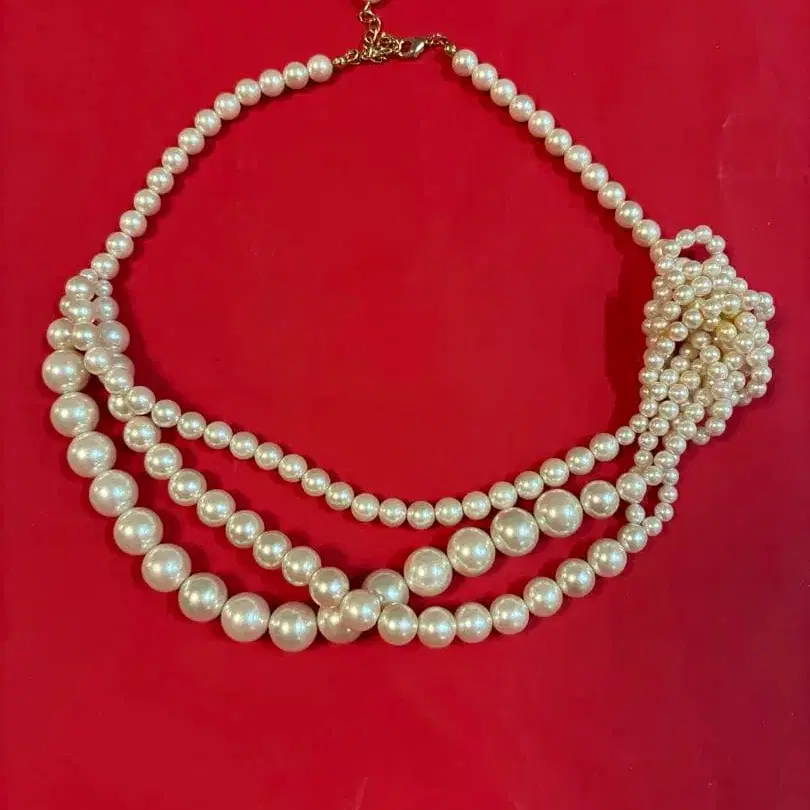 볼륨감 있는 모조 진주 목걸이입니다.