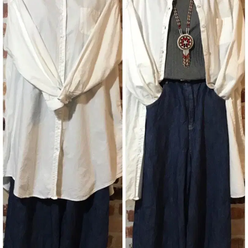 • HUIS 엔슈 직물 모슬린 코튼 와이드 블라우스