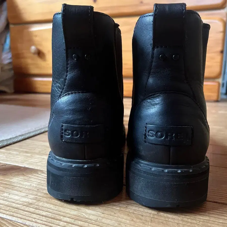 내구성 있는 가죽과 러버 솔의 사이드 고어 부츠. - 브랜드: SOREL - 색상: 블랙 - 스타일: 사이드 고어 부츠 - 소재: 가죽 - 밑창: 러버 발가락 부분에 스크래치가 있습니다. 개인적으로는 신경 쓰이지 않지만, 그 점을 이해해 주실 수 있는 분은 꼭 검토해 주세요.