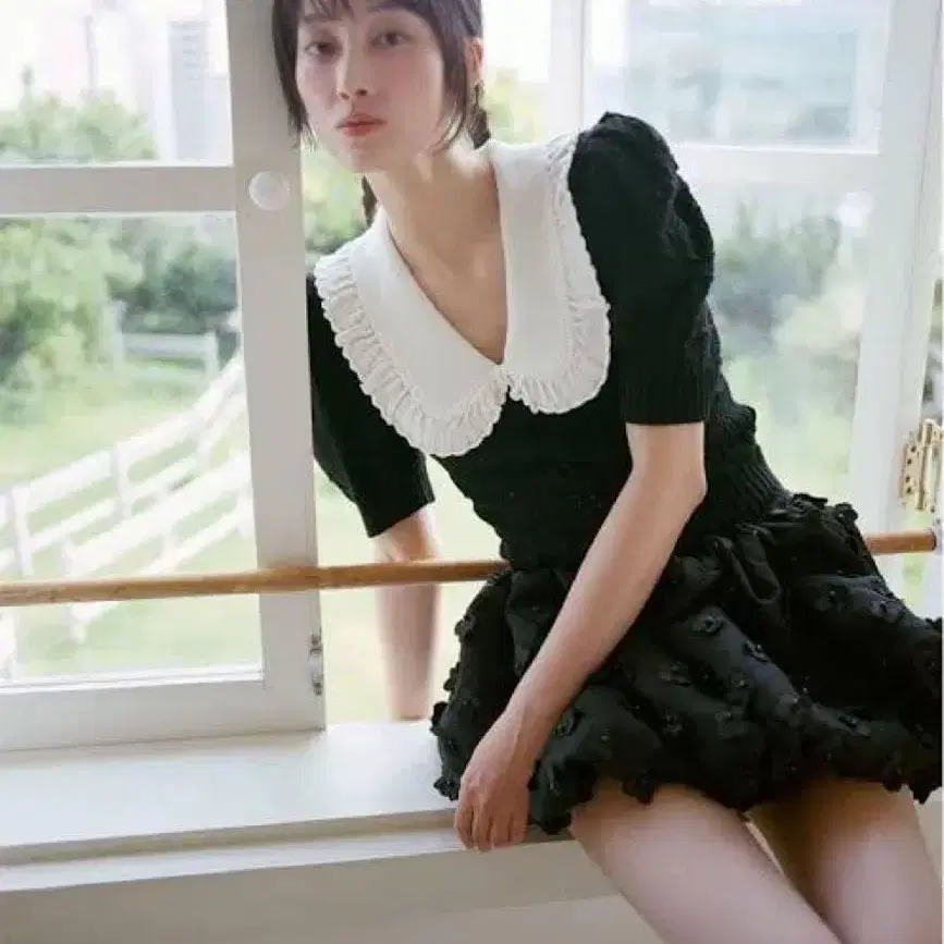 입체적인 플라워 디자인의 블랙 미니 스커트.