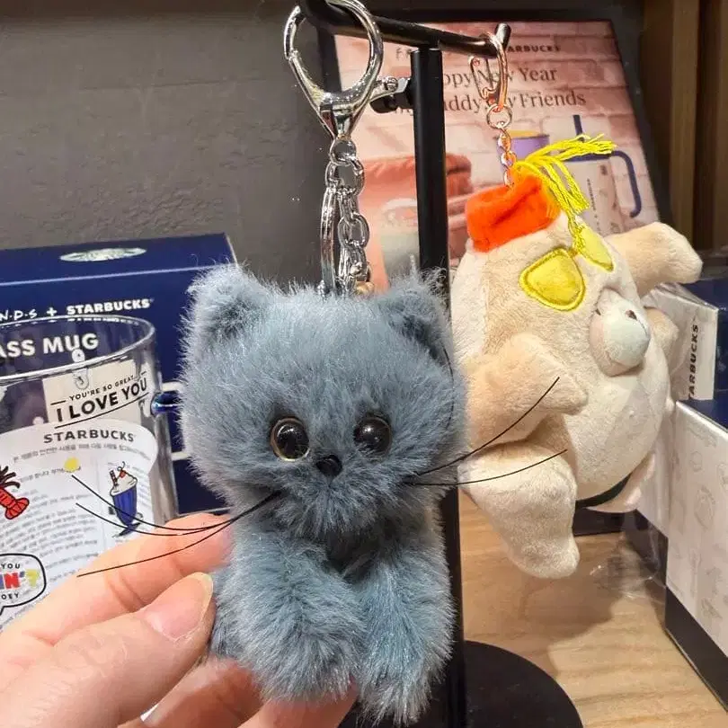 한국 스벅 프렌즈 고양이 봉제 인형 키링 그레이